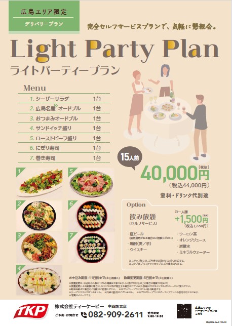※数量変更は、申込時の人数の10%の増減まで承ります。(人数が100名以上の場合は増減10名まで)