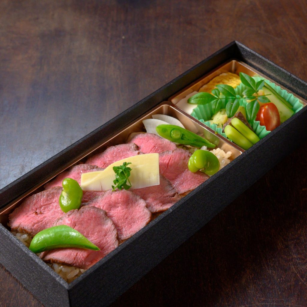 季節の炊き込みご飯と黒毛和牛ローストビーフ弁当
