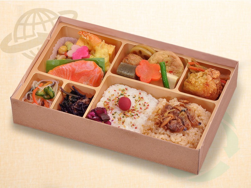 脱石油系プラスチックの天然素材オリジナル容器(エコ弁®)を使用。