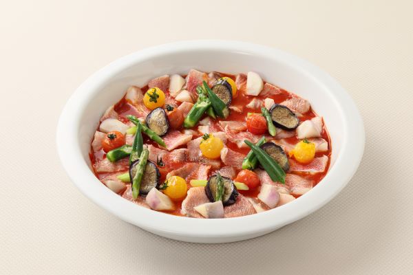 サーモンのマリネ 爽やかな柑橘とフレッシュトマトのソースと共に
