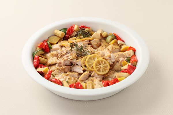若鶏もも肉のロースト 色々野菜のコンデュメント