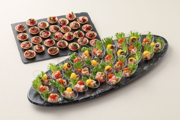 銘柄ポークのアスピックとコールミートのタルトレット